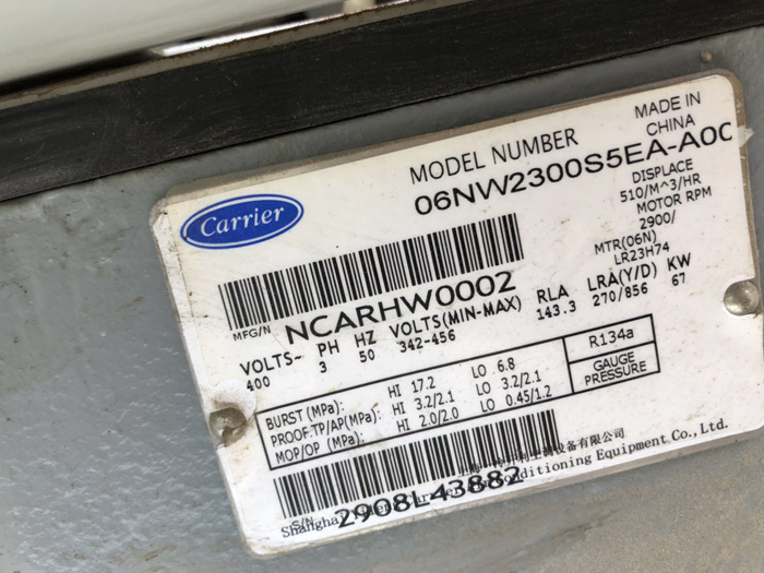 -> 二手67KW開利螺桿機(jī)06NW2300R5A